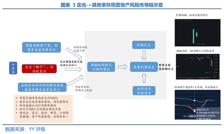 龍光憑一己之力帶崩其他幸存小伙伴,償債意愿難被證實或證偽,金融機構到期不續(xù)或審批完成后觀望不放款進一步擠壓剩余民營房企生存空間,負循環(huán)難停,信用債生態(tài)體系被破壞。