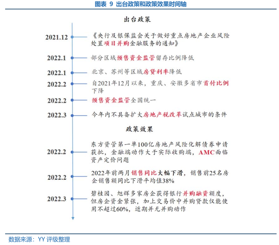 03 融資端,給予其他參與救助的金融機構(銀行、信托、AMC等)和資質較好的項目合作方的配套紓困融資,并對風險化解募資用途加強監(jiān)督。融資端對行業(yè)內民企的再融資放開受制于“去杠桿”和金融機構風險偏好,難有實質性幫扶作用,大概率不能給房企直接帶來現(xiàn)金流,而出險企業(yè)的債務不會憑空消失,資產也多數(shù)需借外力盤活,故融資端更需要政策以更強力推進相關機構落實,從而看到流動性危機企業(yè)中的優(yōu)質項目處置進展加速。