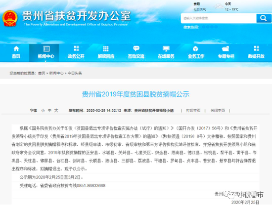 《貴州省2019年度貧困縣脫貧摘帽公示》