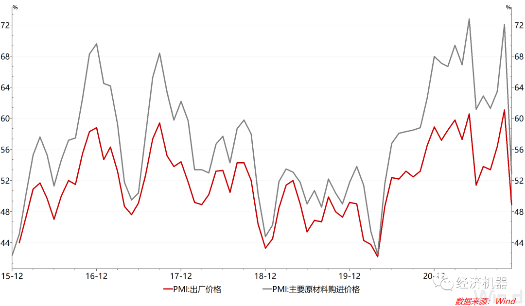 圖4 PMI出廠價格與原材料購進(jìn)價格