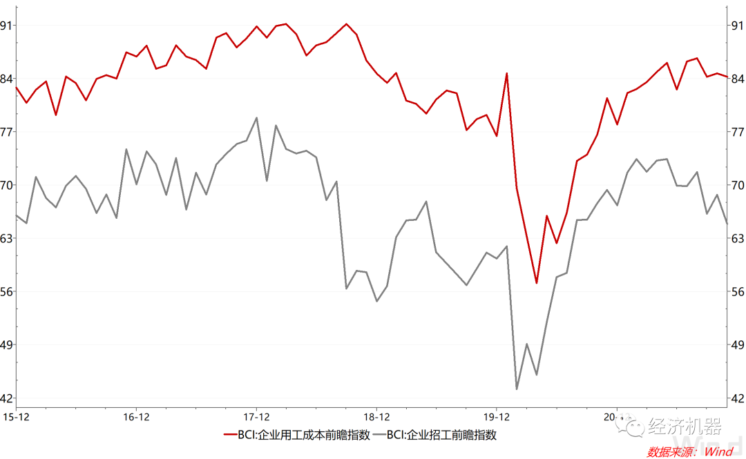 這可能是居民整體收入增長降速有關(guān),短期內(nèi)難以大幅改善。11月最新BCI前瞻指數(shù)也顯示,未來企業(yè)招工將會回落,相應(yīng)的企業(yè)用工成本(居民收入)也會隨之下滑。
