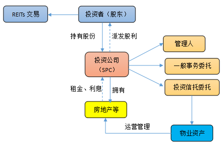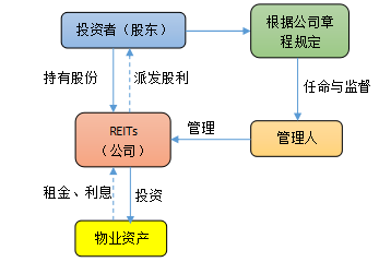 公司型REITs是指通過(guò)設(shè)立以房產(chǎn)投資為經(jīng)營(yíng)范圍的公司,將公司股份出售給投資人,公司再將收益以股利形式分配給投資人。