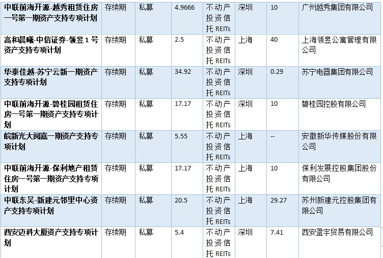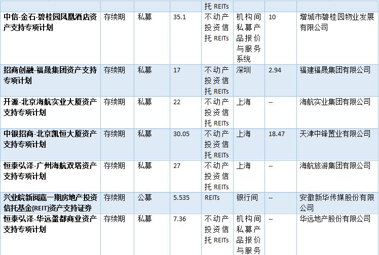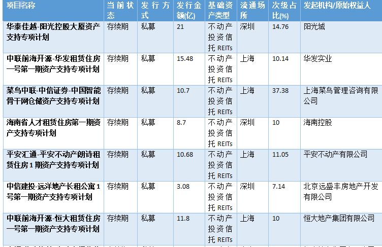 表2-2:已發(fā)行類REITs情況