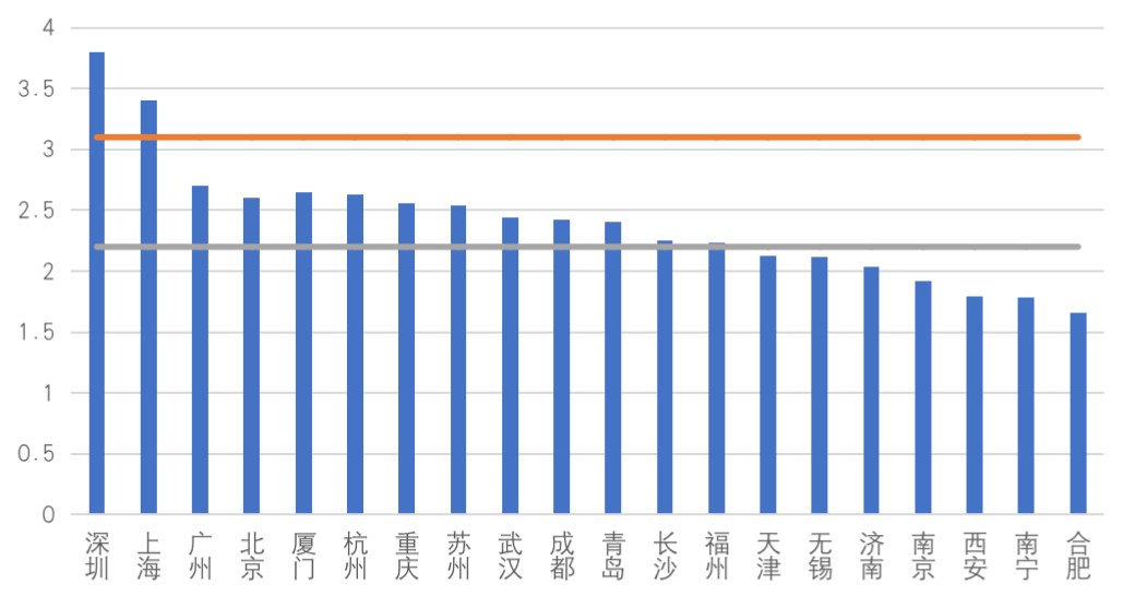 20城住宅平均物業(yè)費(fèi)(元/㎡/月)