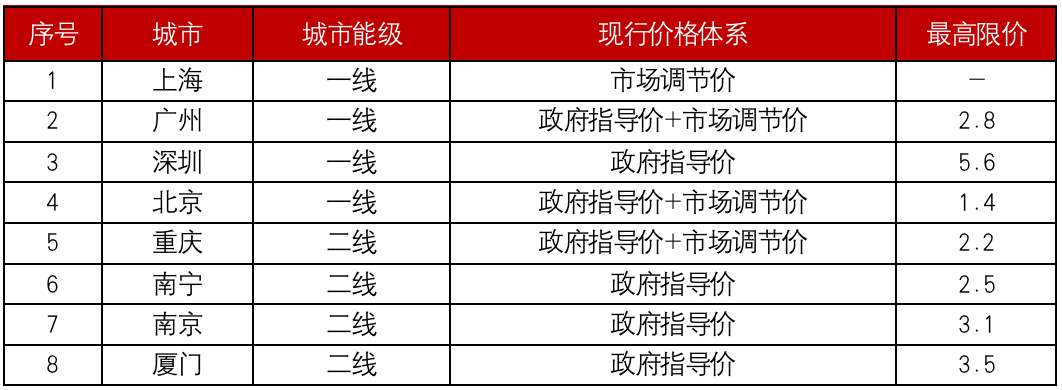 一方面,上海實(shí)行市場調(diào)價(jià)在全國具有良好示范作用,廣州、重慶等城市在政府指導(dǎo)價(jià)基礎(chǔ)上實(shí)行市場調(diào)節(jié)價(jià),市場化價(jià)格體系正逐步推行。