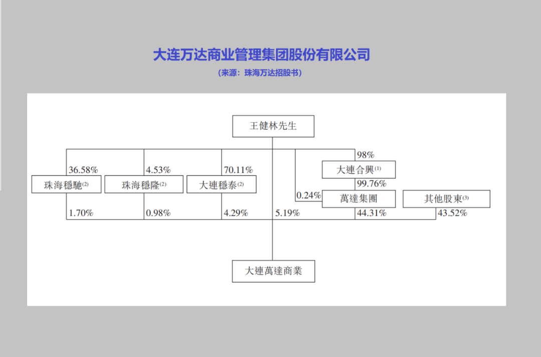 目前,大連萬達商業(yè)中,王健林家族合計持股56.35%;透過大連萬達商業(yè),王健林家族在即將上市的珠海萬達商業(yè)持股44.14%。