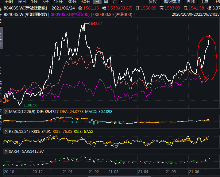 進(jìn)入2021年,新能源版塊也經(jīng)歷了大幅回撤,但是最先修復(fù)失地并創(chuàng)新高的。