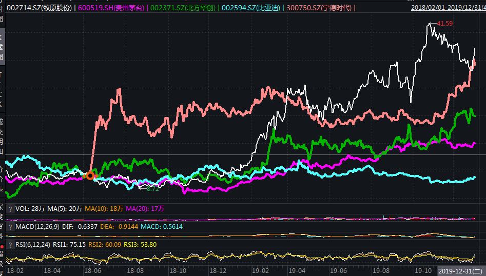 最典型的還有2018年底開(kāi)啟的豬肉股行情。回顧大家都不愿意回首的2018年,在幾乎所有股票都下跌的市場(chǎng)中,只有一類(lèi)股票還能大漲,十倍的上漲。這就是豬肉股。為什么會(huì)這樣?很相似,因?yàn)樵谥忻蕾Q(mào)易戰(zhàn),政策收緊,經(jīng)濟(jì)周期下行的環(huán)境下,幾乎所有行業(yè)都受到?jīng)_擊,但唯獨(dú)豬肉行業(yè)是逆勢(shì)向上的。在萬(wàn)綠叢中總算找到了一點(diǎn)紅,在替代效應(yīng)的加乘下,有限的資金都朝著豬肉股票擁擠。因?yàn)橹貍}(cāng)了2-3只豬肉股票,有些私募基金不僅沒(méi)有虧還獲得了較高的正收益。
