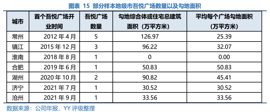 新城的吾悅廣場在眾多商業(yè)品牌中是運(yùn)營較為成功的代表,這一優(yōu)勢反映了新城在商業(yè)項(xiàng)目中成熟的運(yùn)營能力,另外一個方面,吾悅廣場的品牌力量一定程度上也成為了新城在周期中的保護(hù)傘。