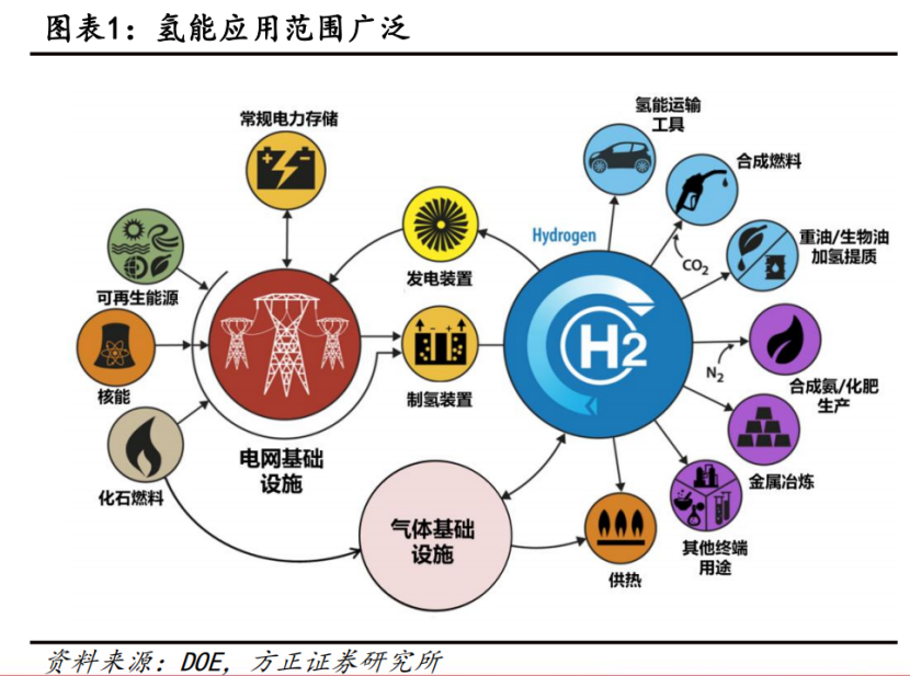 而氫氣直接燃燒或通過燃料電池發(fā)電的產(chǎn)物為水,能夠?qū)崿F(xiàn)真正的零碳排放,對環(huán)境不造成任何污染。故而氫能被稱為終極能源。