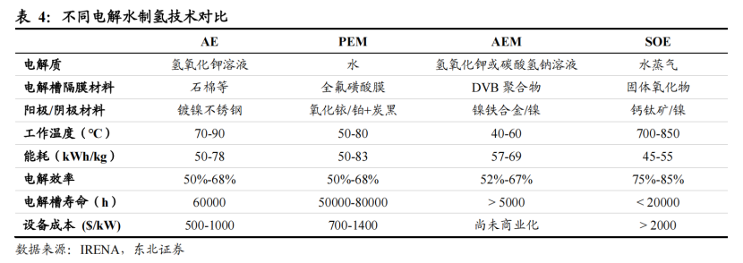 由于是堿性條件,因此可以使用非貴金屬電催化劑,因此電解槽造價(jià)成本較低;但是,難以快速啟動(dòng)和變載,無法快速調(diào)節(jié)制氫速度,因此與可再生能源適配性較差。