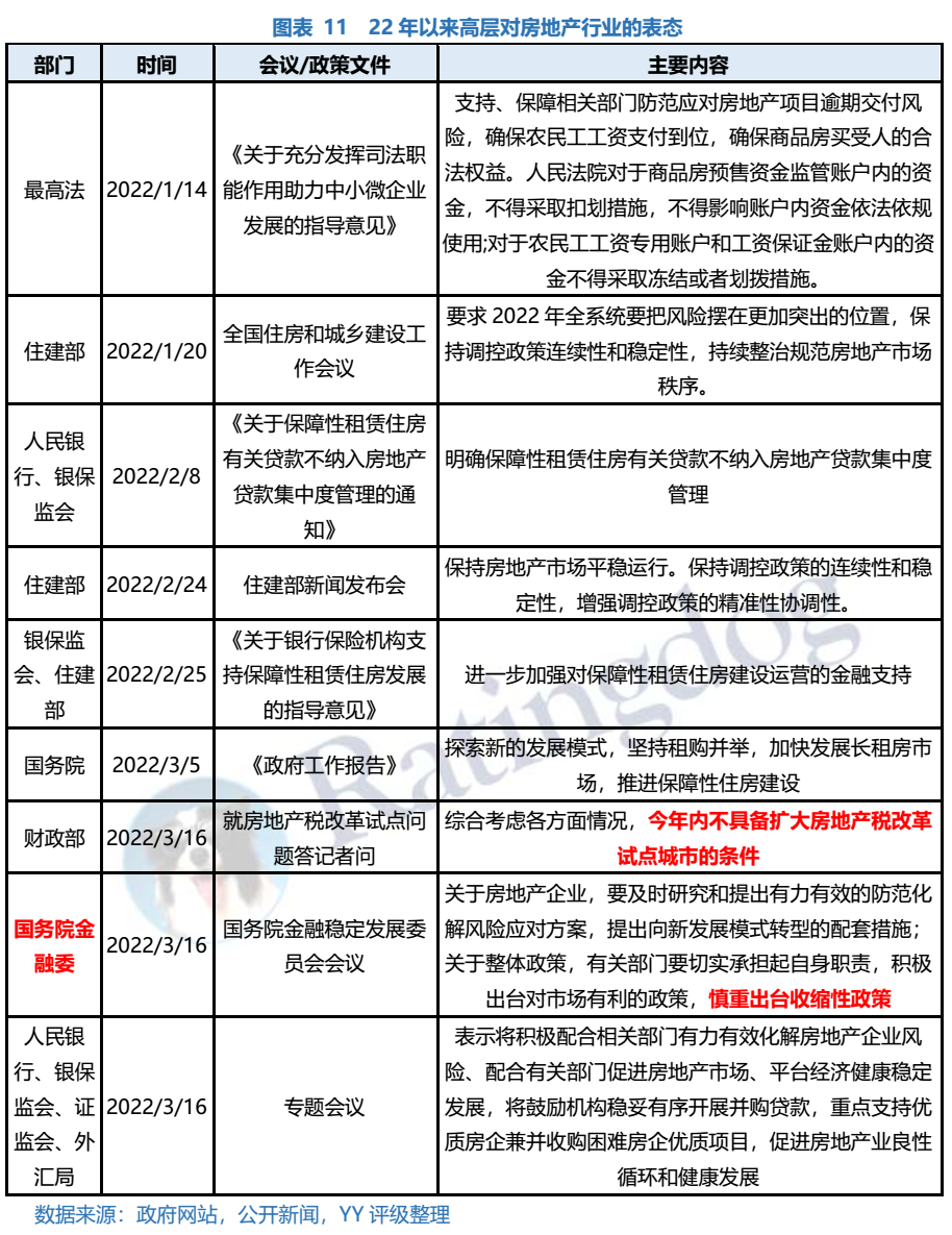 隨著行業(yè)銷售持續(xù)下滑以及主體暴雷頻繁,政策托底的力度愈加顯現(xiàn),尤其是3月16日國務(wù)院金穩(wěn)會(huì)強(qiáng)調(diào)“積極出臺(tái)對市場有利的政策,慎重出臺(tái)收縮性政策”,更是從高層態(tài)度方面給市場打了一劑強(qiáng)心針。但同時(shí)行業(yè)內(nèi)融創(chuàng)這樣體量和排名主體的展期對行業(yè)沖擊力不可忽視,預(yù)期后續(xù)政策除了托底銷售和拿地外,對主體層面、已出險(xiǎn)企業(yè)的風(fēng)險(xiǎn)化解還將進(jìn)一步落實(shí)。
