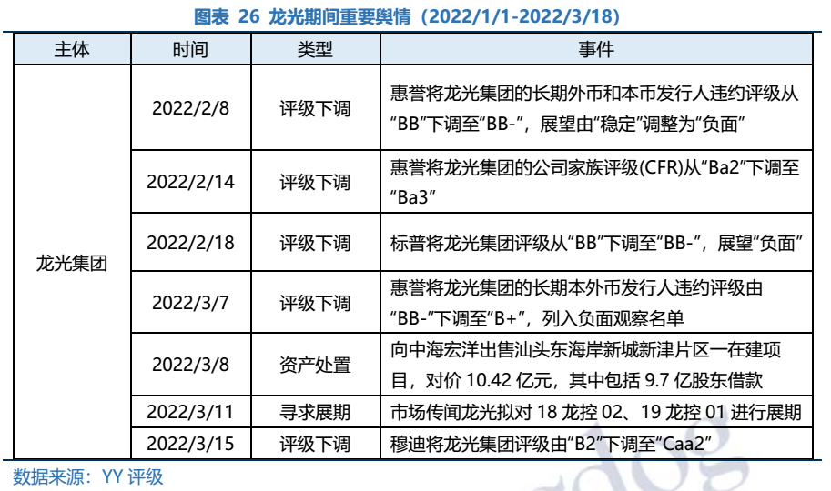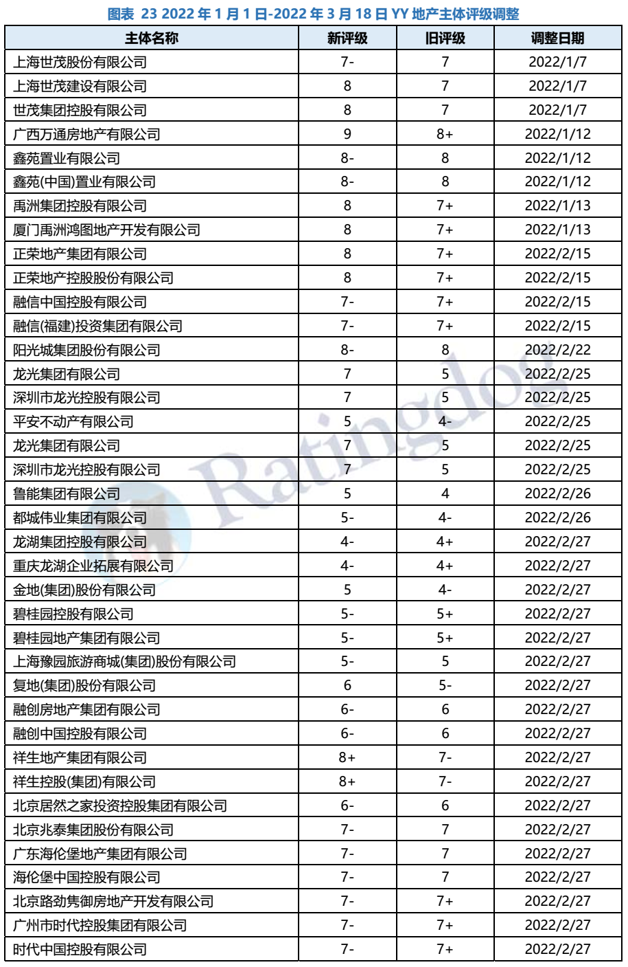 2022年1月1日至3月18日,YY評級(jí)綜合評估行業(yè)基本面、個(gè)體信用資質(zhì)及負(fù)面輿情等因素,下調(diào)42家地產(chǎn)主體評級(jí),即包括目前面臨流動(dòng)性或再融資困境的民營房企,也包括經(jīng)營能力較弱的央企/國企地產(chǎn)主體。