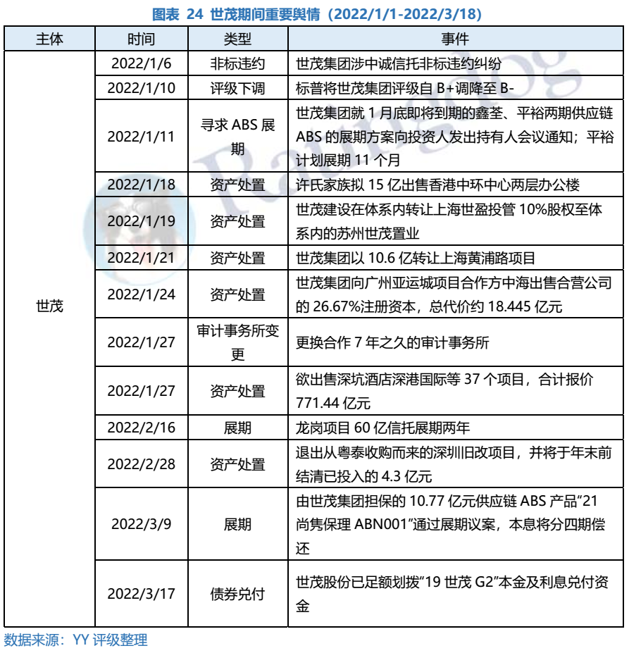 具體來看,熱點(diǎn)主體方面,世茂一方面尋求金融機(jī)構(gòu)支持,對期間內(nèi)到期的ABS及信托進(jìn)行展期,另一方面積極處置資產(chǎn)回籠資金。3月17日,世茂股份足額劃轉(zhuǎn)“19世茂G2”本息兌付資金,表明公司保公開債兌付的姿態(tài)。