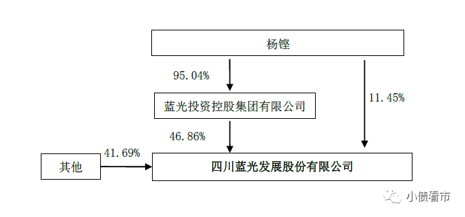 從股權(quán)結(jié)構(gòu)上來看,藍(lán)光發(fā)展的控股股東為藍(lán)光控股,持股比例為46.86%,穿透后公司實控人為楊鏗。