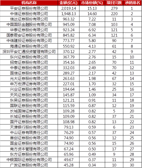 圖表3. 證監(jiān)會主管ABS承銷情況(部分)