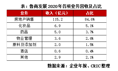 房地產(chǎn)銷售仍是主業(yè),魯商生活服務(wù)在港遞交招股書。從魯商發(fā)展2020年的營業(yè)收入來看,房地產(chǎn)銷售仍是主業(yè),占比84.6%,其次為化妝品和藥品生產(chǎn)銷售,這部分占比合計達8.8%。物業(yè)管理方面,旗下物業(yè)板塊魯商生活服務(wù)營收占比達2.6%。值得一提的是,魯商生活服務(wù)已于2021年7月2日于港交所遞交招股書,據(jù)招股書披露,截止至2021年3月31日,其在管面積約 1800 萬平米。雖目前規(guī)模不大,若后續(xù)成功拆分上市,對魯商發(fā)展拓寬融資渠道有所幫助。