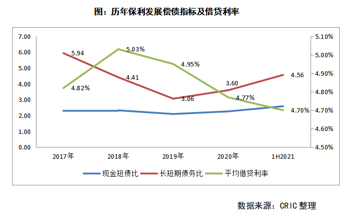 2021年上半年,保利發(fā)展持有現金增長6.5%至1554.22億元,有息負債規(guī)模3341億元,現金短債比和長短期債務比都有所改善;此外上半年保利的借貸利率為4.7%,而新發(fā)行的兩筆中期票據均在4%以下的低位,未來融資成本也有望進一步下降。