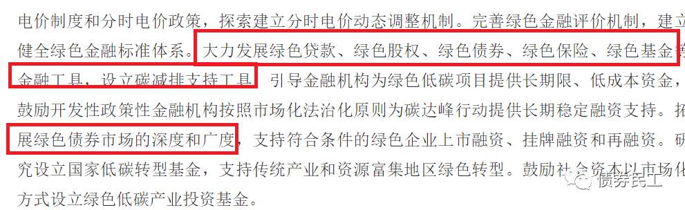 國(guó)務(wù)院2021年10月26日公布的《國(guó)務(wù)院關(guān)于印發(fā)2030年前碳達(dá)峰行動(dòng)方案的通知》,明確提出“大力發(fā)展綠色貸款、綠色股權(quán)、綠色債券、綠色保險(xiǎn)、綠色基金等金融工具”、“拓展綠色債券市場(chǎng)的深度和廣度”。綠色債券的發(fā)展再次迎來重磅利好政策。