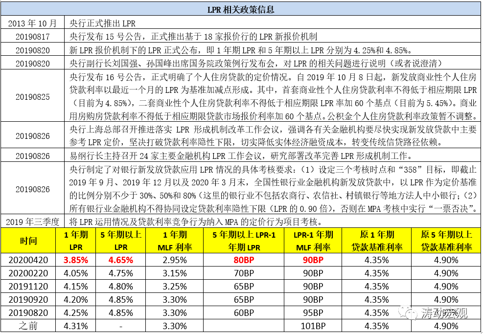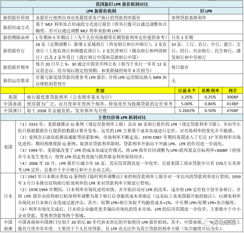 (3)和2013年推出的LPR相比,LPR新報價機(jī)制有諸多創(chuàng)新之處,主要體現(xiàn)在報價原則(基于最優(yōu)客戶)、形成方式(MLF加點)、期限品種(1年和5年以上)、報價行(數(shù)量更多且類型更豐富)、報價頻率(固定于每月20日)以及新的運用要求(通過MPA和自律機(jī)制管理)來強化約束等方面。