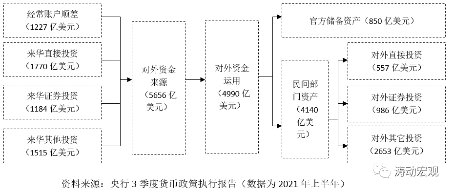 第一,央行在銀行間外匯市場中收購?fù)鈪R所形成的人民幣投放,反映在央行資產(chǎn)負(fù)債表中,形成央行所持有的外匯儲備。