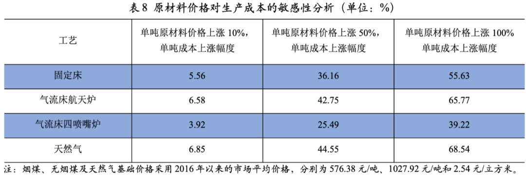 整體看,氣流床工藝的生產(chǎn)成本優(yōu)勢(shì)顯著,特別是在當(dāng)前“限電限產(chǎn)”以及煤炭?jī)r(jià)格處于高位的情況下,氣流床航天爐裝置的成本優(yōu)勢(shì)更為明顯。