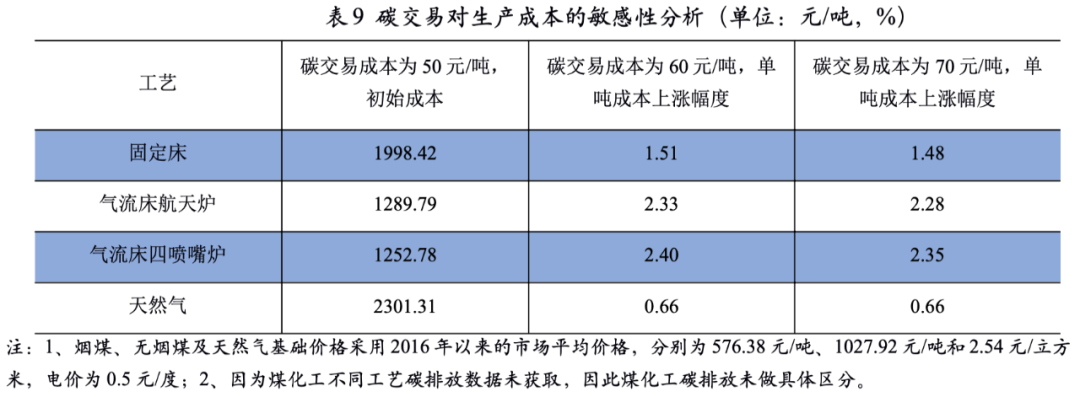原材料對(duì)煤化工企業(yè)的生產(chǎn)成本影響很大。當(dāng)前大型煤炭企業(yè)均布局煤化工業(yè)務(wù),主要基于其原料保障能力。提高煤炭資源的利用率、降低產(chǎn)品的碳單耗,既能減少碳排放,又能降低生產(chǎn)成本。
