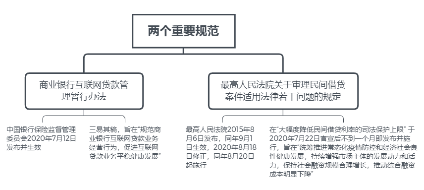庚子夏秋之交,信貸行業(yè)接連迎來重要規(guī)范,一為《商業(yè)銀行互聯(lián)網(wǎng)貸款管理暫行辦法》(下稱“暫行辦法”),二為《最高人民法院關(guān)于修改<關(guān)于審理民間借貸案件適用法律若干問題的規(guī)定>的決定》(下稱“8.20司法解釋”)。