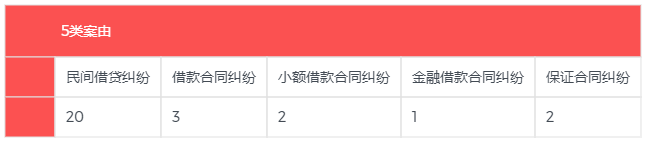 2. 包括5類案由:民間借貸糾紛(占絕對(duì)多數(shù))、借款合同糾紛、小額借款合同糾紛、金融借款合同糾紛、保證合同糾紛。