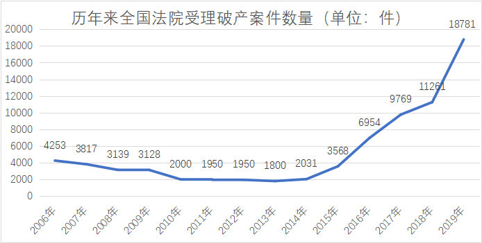 影響中國未來破產(chǎn)案件收案量的是個(gè)人破產(chǎn)案件。雖然中國現(xiàn)在沒有個(gè)人破產(chǎn)法,但是個(gè)人破產(chǎn)法已經(jīng)呼之欲出了。2019年7月,國家發(fā)展改革委、最高人民法院等13部委印發(fā)了《加快完善市場主體退出制度改革方案》,提出要構(gòu)建和完善自然人破產(chǎn)制度,尤其是強(qiáng)調(diào)了分步推進(jìn)建立自然人破產(chǎn)制度;2019年,個(gè)人債務(wù)的集中清理在溫州、臺(tái)州等地開始試點(diǎn);2020年4月28日,《深圳經(jīng)濟(jì)特區(qū)個(gè)人破產(chǎn)條例(草案)》提請(qǐng)首次審議,并已被列入深圳人大2020年度立法規(guī)劃,預(yù)計(jì)年內(nèi)出臺(tái)。