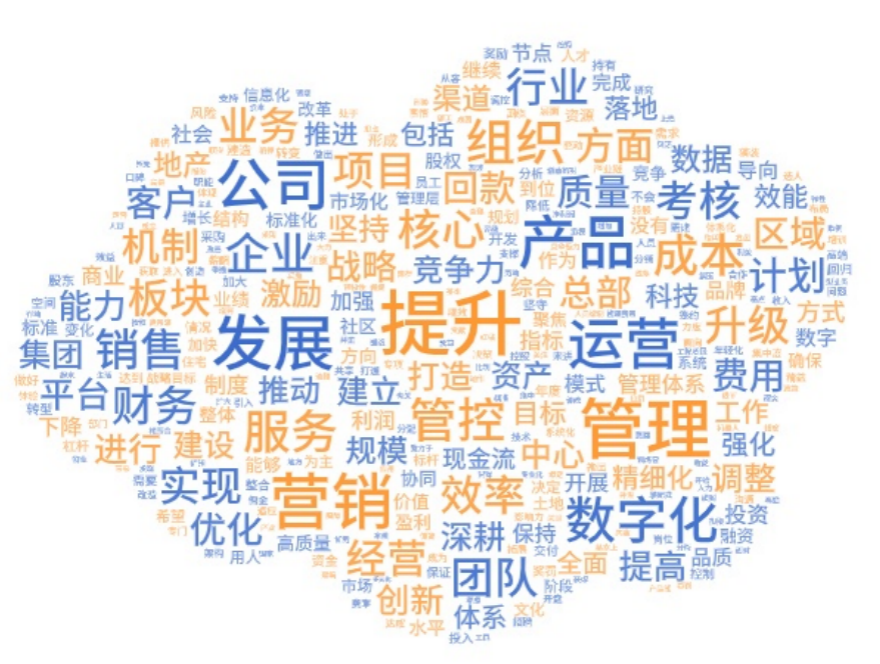 具體舉措中,提及頻次最高的幾個關(guān)鍵詞為產(chǎn)品、營銷、運營和數(shù)字化。由此可見,這四個方面是正是房企當(dāng)前調(diào)整、優(yōu)化、變革的主要切入點。”