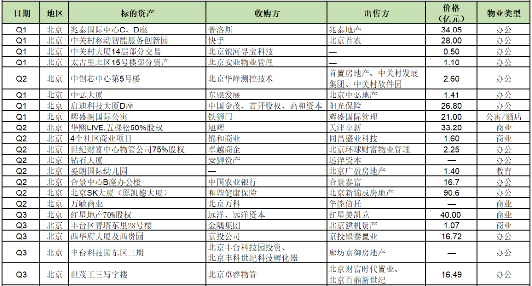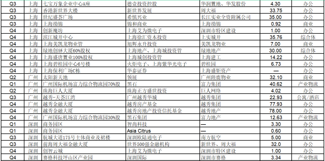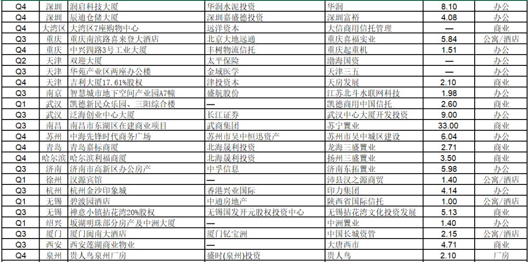 2021年部分商業(yè)地產(chǎn)大宗交易明細(xì):