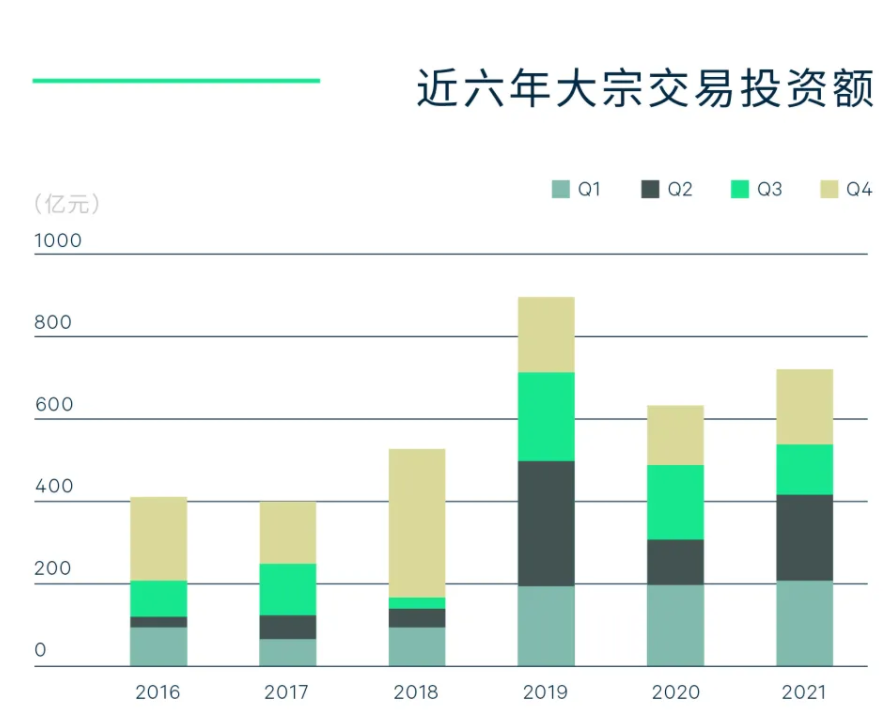 據(jù)第一太平戴維斯數(shù)據(jù)顯示,2021年中國大宗投資市場(chǎng)完成交易總額達(dá)人民幣3,645億元,同比上升28%。