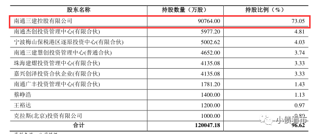 從股權(quán)結(jié)構(gòu)上看,南通三建股權(quán)較為分散,其控股股東為三建控股,持股比例為73.05%,穿透后黃裕輝等8人為公司實控人,屬于民營企業(yè)。