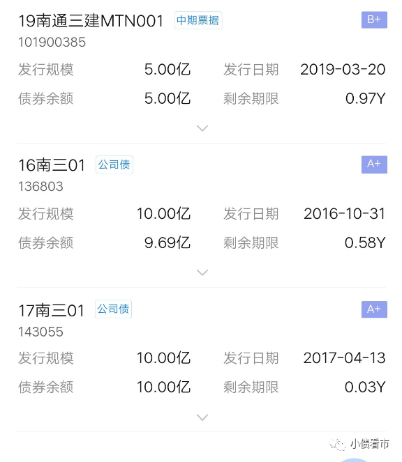 《小債看市》統(tǒng)計,目前南通三建存續(xù)3只債券,存續(xù)規(guī)模24.69億元,全部將于一年內(nèi)到期。