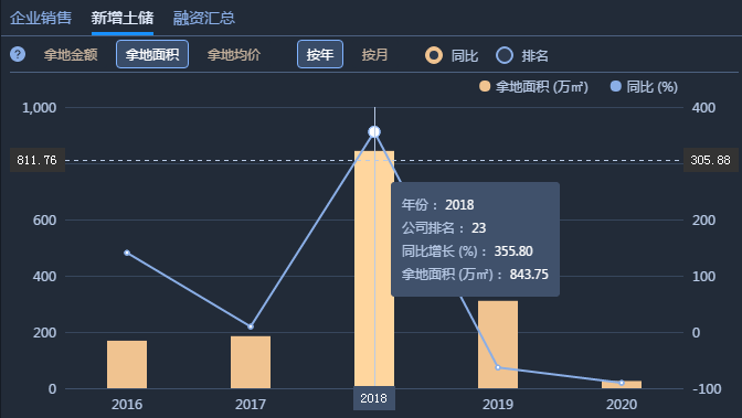 2018年,禹洲地產(chǎn)并新增了土地儲備843.75萬平方米,同比增長355.80%。但是在2018年禹洲全年銷售額560.03億元,并沒有達成全年600億元的目標。
