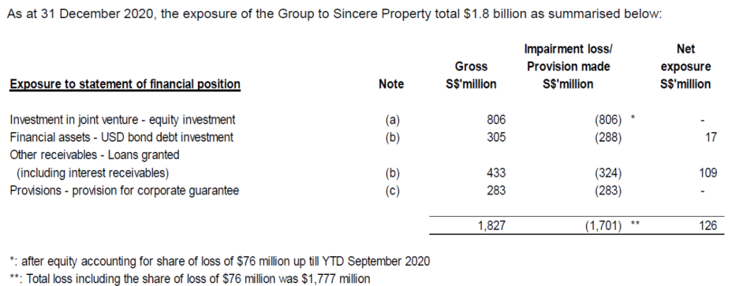 2021年2月26日,CDL發(fā)布2020年業(yè)績(jī)報(bào)告,鑒于協(xié)信遠(yuǎn)創(chuàng)目前的財(cái)務(wù)狀況,將投資于協(xié)信的總共18.27億新加坡元(折合人民90億元)一次性計(jì)提減值損失17.8億新元(折合人民幣89億),這次計(jì)提導(dǎo)致CDL全年虧損93億元之巨,是58年歷史上最差的業(yè)績(jī)。