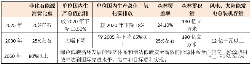 2021年10月24日發(fā)布的《關(guān)于完整準(zhǔn)確全面貫徹新發(fā)展理念做好碳達(dá)峰碳中和工作的意見》明確了未來五年、十年與四十年的量化任務(wù)。可以看出,2030年以前的非化石能源比重提升并不明顯,2030至2060年之間的三十年變化較大。