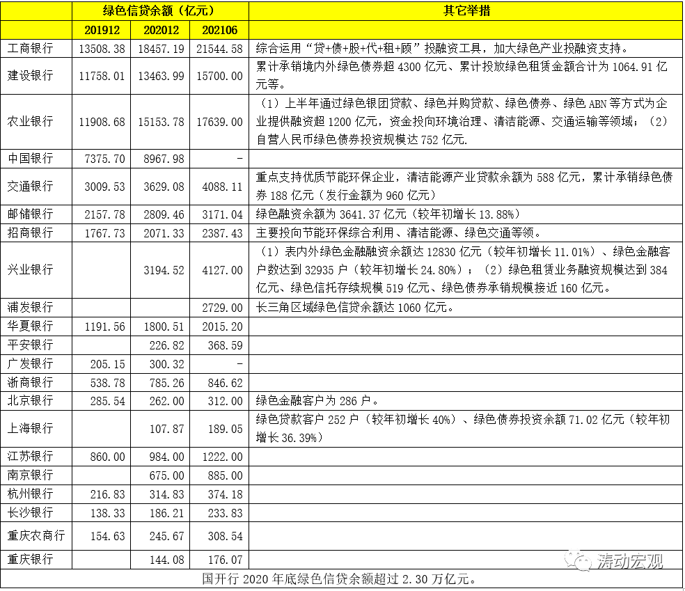 2、主要銀行的綠色信貸投放情況