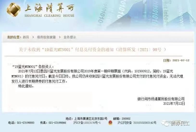 藍光發(fā)展已于2021年7月12日正式債券違約,目前違約債務金額合計為241.71億元(截至2021年11月8日)。根據(jù)上海清算網(wǎng)2021年7月12日的公告,藍光發(fā)展發(fā)行的“19藍光MTN001”未能按時支付付息兌付資金,構(gòu)成了實質(zhì)性債券違約。這是繼泰禾集團、華夏幸福違約之后的第三家千億房企發(fā)生債券實質(zhì)性違約。