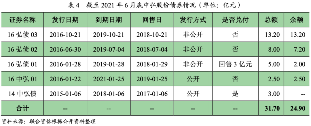 中弘控股股份有限公司(以下簡(jiǎn)稱(chēng)“中弘股份”)成立于2001年,為A股上市企業(yè),旗下?lián)碛腥揖惩馍鲜泄荆瑢?shí)際控制人為王永紅,主營(yíng)業(yè)務(wù)為商業(yè)地產(chǎn)、文化旅游地產(chǎn)等核心物業(yè)開(kāi)發(fā)與運(yùn)營(yíng)業(yè)務(wù)。中弘股份共發(fā)行5期債券,其中2期為公募債,3期為私募債,債券總額31.70億元。除2018年1月6日到期的“14中弘債”和2018年1月29日到回售日的“16弘債01”的回售金額兌付外,其余均違約,首個(gè)違約債券為2018年7月4日到回售日的“16弘債02”,截至2021年6月底,中弘股份違約債券本金余額24.90億元。