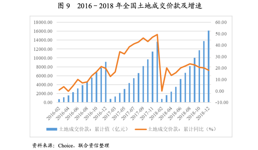 土地市場(chǎng)方面,隨著房地產(chǎn)市場(chǎng)政策趨緊,房企拿地普遍持謹(jǐn)慎態(tài)度。據(jù)中指研究院數(shù)據(jù),2018年全國(guó)300個(gè)城市共推出各類(lèi)用地12.84億平方米,同比增長(zhǎng)20%;土地成交量10.55億平方米,同比增長(zhǎng)14%。進(jìn)入2018年以來(lái),土地出讓政策頻出,部分城市限房?jī)r(jià)、限地價(jià)、競(jìng)自持、競(jìng)配建等土地出讓條件嚴(yán)苛,房企的利潤(rùn)空間被壓縮;同時(shí),限購(gòu)、限貸款等調(diào)控城市范圍增大,部份購(gòu)房需求被抑制,銷(xiāo)售增速放緩,房企回款壓力較大;加之房企融資渠道持續(xù)收緊,拿地更趨理性,土地成交規(guī)模增速不及供地增速,土地流拍情況較2017年明顯增加。價(jià)格方面,2018年,全國(guó)土地成交價(jià)款1.61萬(wàn)億元,同比增長(zhǎng)18.00%,增速同比減少31.40個(gè)百分點(diǎn);300個(gè)城市成交樓面均價(jià)為2156元/平方米,同比下跌11%;平均溢價(jià)率為13%,同比下降16個(gè)百分點(diǎn)。但部分房企為沖規(guī)模,依然高溢價(jià)拿地,部分高溢價(jià)項(xiàng)目樓面地價(jià)接近政府限價(jià)。