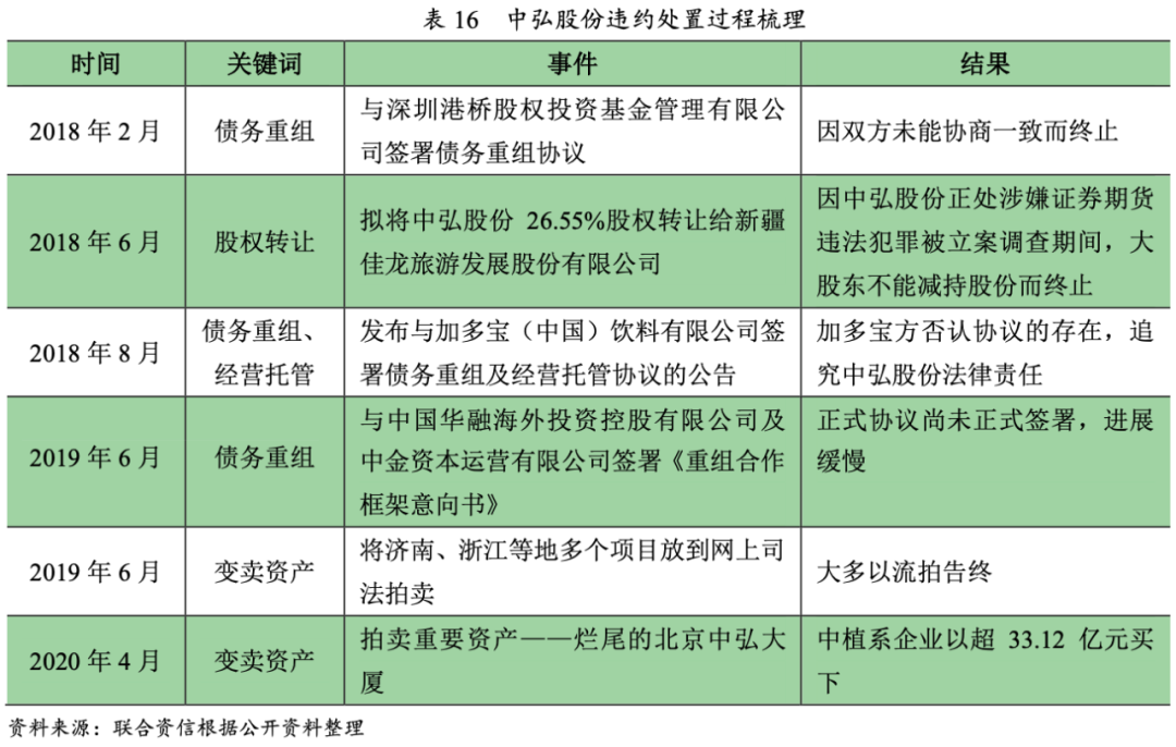 (1)違約處置方式一:債務(wù)重組——中弘股份