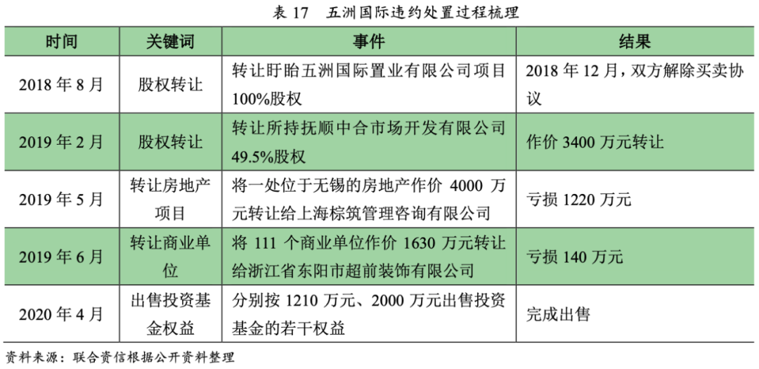 (2)違約處置方式二:變賣(mài)資產(chǎn)——五洲國(guó)際