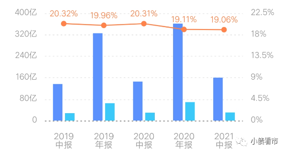 2018年至今年上半年,正榮地產少數股東權益分別為79.42億、132.24億、166.08億以及253.79億元占比過半,但少數股東損益卻變化不大占比僅兩成,少股股東權益在凈利潤中的占比嚴重不匹配。