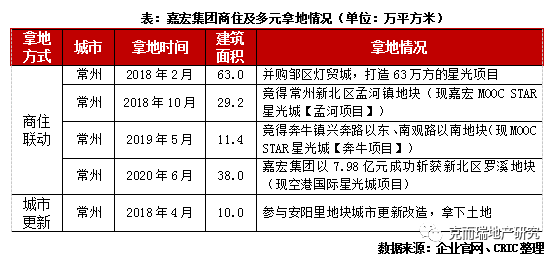 不僅僅是這些規(guī)模房企和擁有母公司強(qiáng)大商業(yè)資源的公司,江蘇的小型房企嘉宏集團(tuán)也積極借助商住聯(lián)動拿地:2018年至2020年間,企業(yè)在常州市通過招拍掛以及收并購的方式成功斬獲了4幅商住土地,均用于打造企業(yè)的星光系列商住綜合體。針對這些綜合體類型的地塊,嘉宏還專門打造了依托大型城市綜合體的配套資源,選擇城市潛力地段,以大盤的視角和格局打造項(xiàng)目“蔚藍(lán)”產(chǎn)品系。另外企業(yè)還借助本土優(yōu)勢,積極參與常州的城市更新改造項(xiàng)目,在2018年4月,集團(tuán)完成了對安陽里項(xiàng)目的改造,并成功拿到了項(xiàng)目的開發(fā)權(quán)。