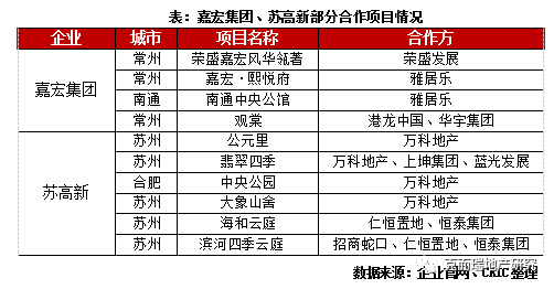 另一個(gè)特點(diǎn)是積極與規(guī)模房企合作,抱團(tuán)聯(lián)合開發(fā)。由于外來房企的持續(xù)進(jìn)駐,土地價(jià)格上漲,本土房企僅靠單打獨(dú)斗很難取得市場競爭優(yōu)勢,合作拿地能有效降低拿地成本、擴(kuò)大銷售規(guī)模、分散風(fēng)險(xiǎn),也成為蘇系房企重要的拿地手段。以蘇高新為例,雖布局城市有限,但多年的城市深耕積累了口碑和經(jīng)驗(yàn),因此贏得了不少合作機(jī)會,尤其是在蘇州,和萬科、招商、仁恒等均有合作項(xiàng)目,也因此在競爭激烈的蘇州市場穩(wěn)住了龍頭地位并取得絕對優(yōu)勢。嘉宏集團(tuán)同樣與品牌房企保持了積極合作,2019年5月,嘉宏集團(tuán)與雅居樂合作開發(fā)了高鐵新城項(xiàng)目,之后在2020年3月,企業(yè)通過與南通雅居樂聯(lián)合拿地成功新進(jìn)駐了南通,與規(guī)模房企合作進(jìn)駐新城幫助企業(yè)有效降低風(fēng)險(xiǎn)。