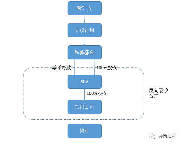 (但跟一般的類Reits結(jié)構(gòu)中最后一步項(xiàng)目公司反向收購SPV又有所不同,主要不同和原因見后文分析)。