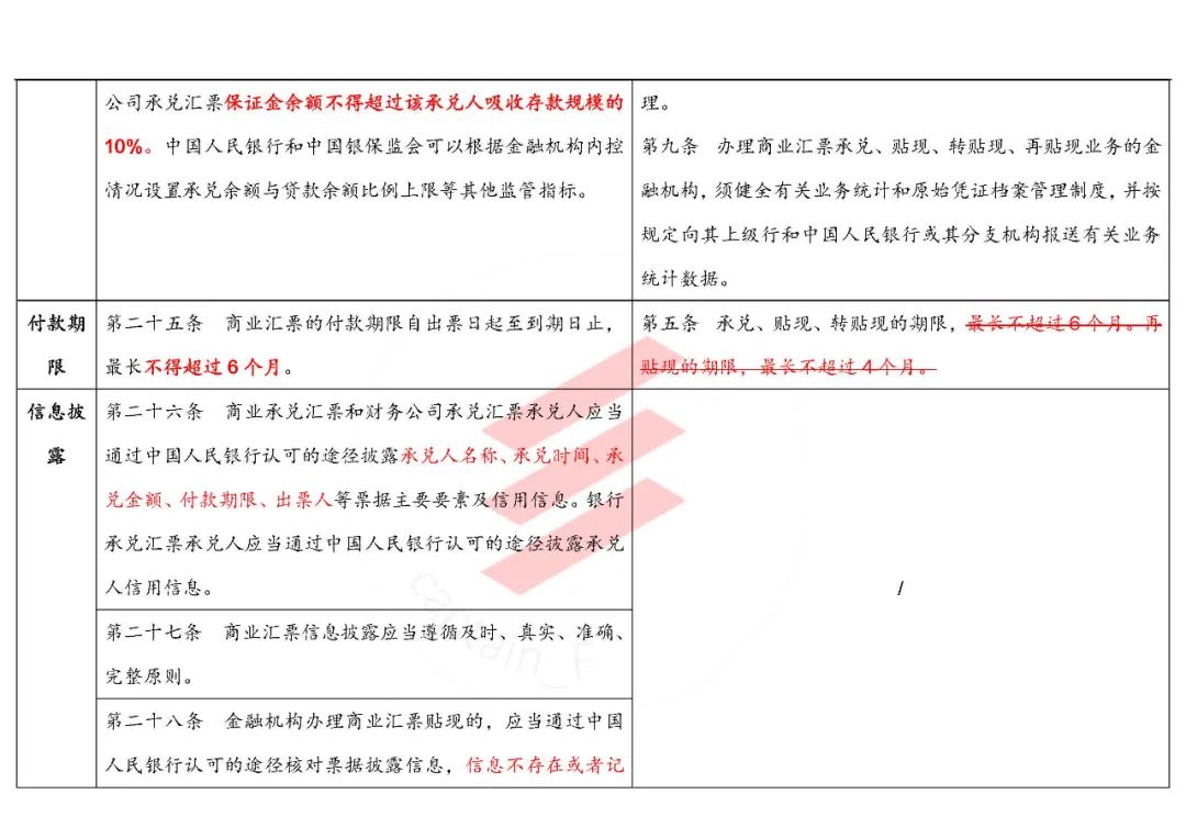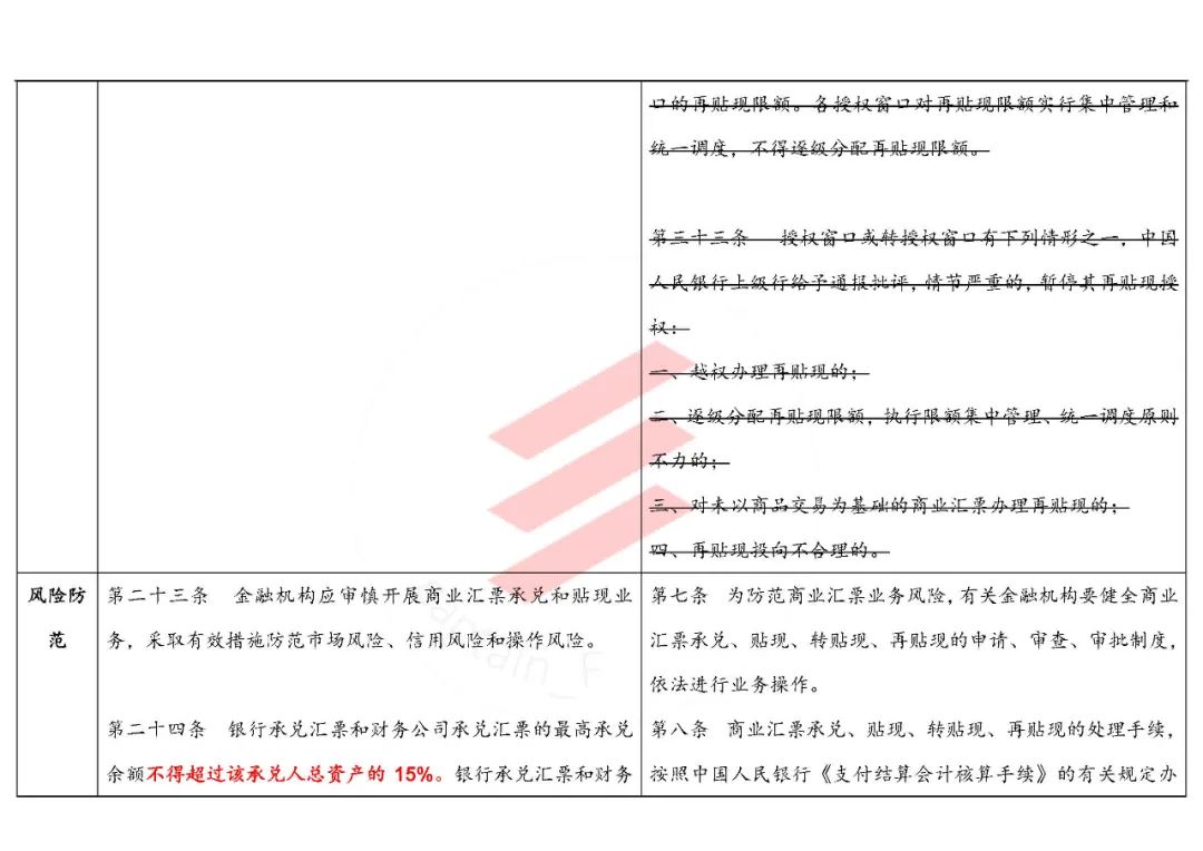 “第二十四條 銀行承兌匯票和財(cái)務(wù)公司承兌匯票的最高承兌余額不得超過(guò)該承兌人總資產(chǎn)的15%。銀行承兌匯票和財(cái)務(wù)公司承兌匯票保證金余額不得超過(guò)該承兌人吸收存款規(guī)模的10%。中國(guó)人民銀行和中國(guó)銀保監(jiān)會(huì)可以根據(jù)金融機(jī)構(gòu)內(nèi)控情況設(shè)置承兌余額與貸款余額比例上限等其他監(jiān)管指標(biāo)。”