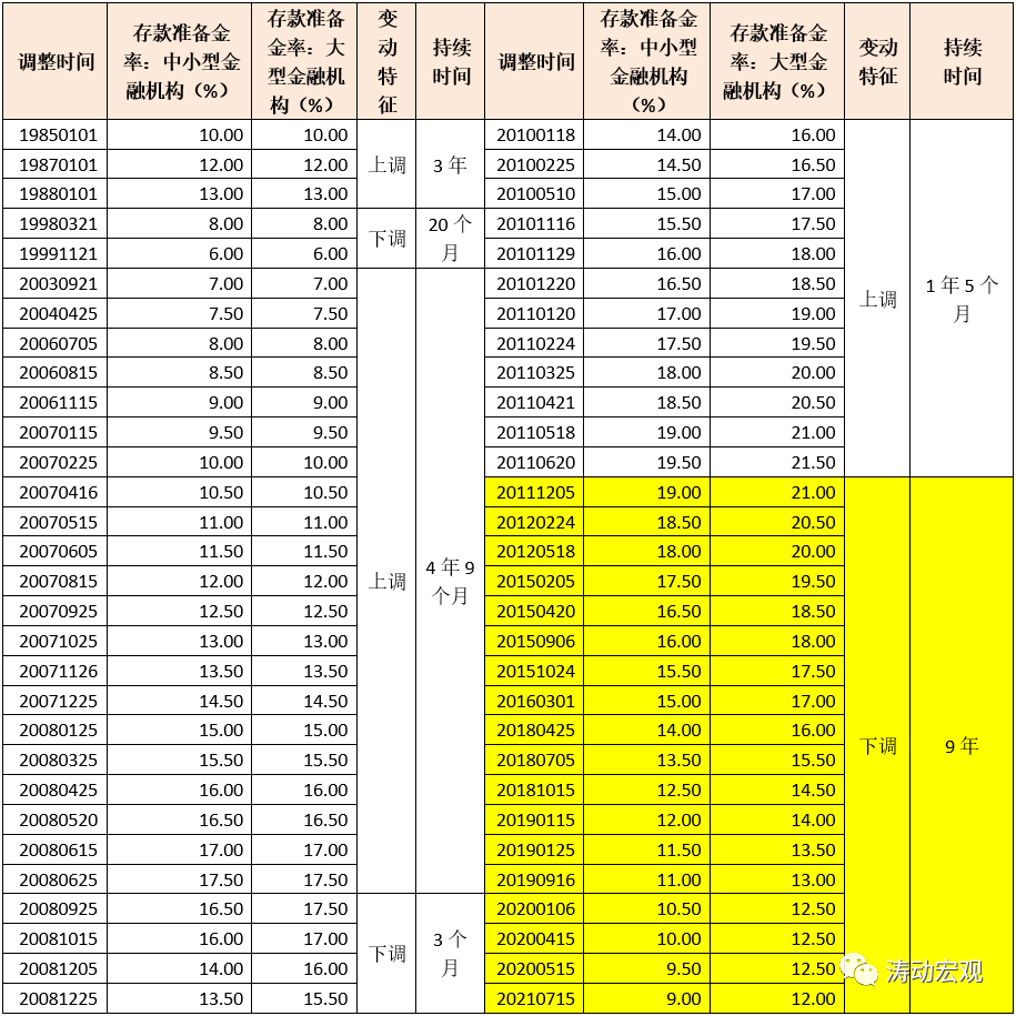現在回過頭來看,有五個年份最值得關注,即2007年、2008年、2010-2011年和2015年存準率分別調整了10次、10次、13次和4次,四個年份合計調整了37次。其中,2007-2008年受到金融危機的洗禮,央行的貨幣政策明顯被擾動,導致政策出現反復,2010-11年則是因為信貸投放泛濫。